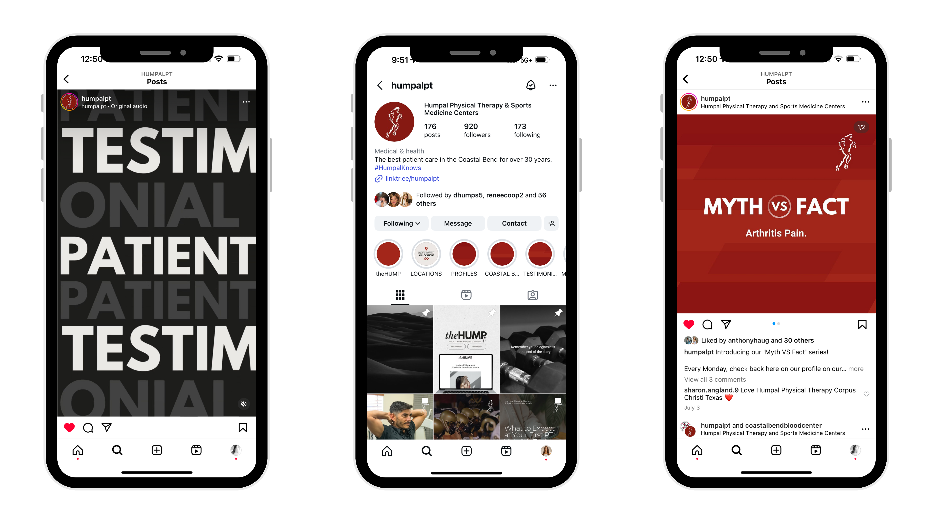 I collaborate with the marketing team at Humpal Physical Therapy to manage their social media presence across Instagram, Facebook, and TikTok. With a strong Facebook following of over 4,000, the platform remains our most effective way to connect with their core demographic. I regularly travel to the Coastal Bend area to capture photo and video content from their six clinic locations, ensuring a consistent and engaging online presence.